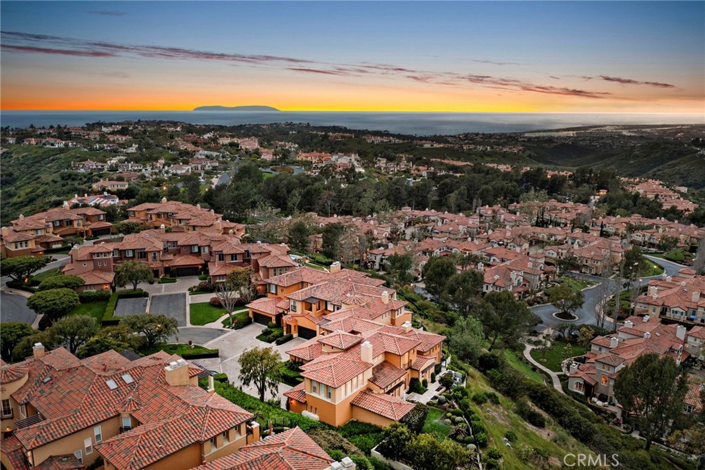 Don't miss the unmatched, panoramic and unobstructed ocean, city lights, and hillside views from 1 Riva Drive in Newport Coast! Set in the gated hillside community of Altezza, this 2,720 +/- s.f. end unit residence with 3 bedrooms and 2.5 bathrooms offers the largest floor plan available, as well as a rare and in-demand 3-car garage and a long driveway. Soaring ceiling heights create a sense of spaciousness, generous windows and sliding doors pull in sunshine, and wood floors on the main level offer timeless style. The two-story living room features a fantastic fireplace wall with custom mantle and hearth, book-ended by built-in shelving, and overlooked by an upper floor balcony, which allows natural light to fill the room, while the adjacent dining room features a connected wet bar. An open concept kitchen and family room, offering a warming fireplace and walls of glass that link to the outdoors, is a large space that welcomes entertaining, with black granite counters and top-of-the-line appliances. The family room opens to the rear outdoor entertaining area, which features a private, in-ground spa, for relaxing evenings under the stars. A sprawling main floor primary bedroom has vaulted ceilings that create an airy retreat, with direct access to the relaxing outdoor patio and spa, custom closets, and an ensuite bath has a deep soaking tub and separate shower. The main floor is completed by a laundry room and powder room. Upstairs, a large kid's bunk room can also be a fantastic multi-use space, with potential for a media room, game room, gym, or playroom. Two upstairs bedrooms each offer custom closets, while one offers an ensuite bath with premium granite surfaces and tile. Outdoor patio spaces wrap around the home, offering access to the kitchen, dining room, family room, and primary bedroom, creating a seamless connection to nature, with breathtaking, unobstructed views of mountains, the Pacific Ocean, and city lights, and private in-ground spa. Altezza offers residents a community pool, spa, tennis court, and multi-purpose room and is central to the best of Newport Coast, including shopping, dining, beaches, John Wayne Airport, and freeways.