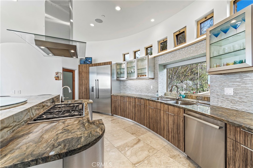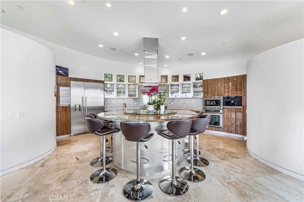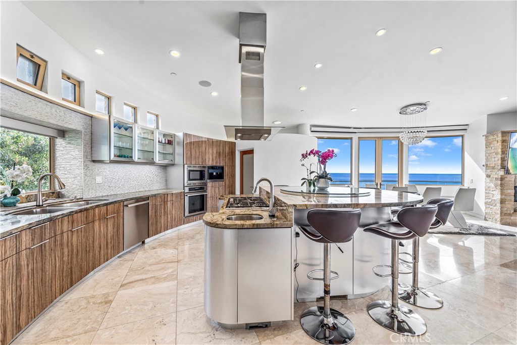 Available now Furnished or Unfurnished~ This luxurious Laguna Beach modern estate, available for lease on negotiable terms, boasts stunning panoramic ocean, city lights, and Catalina Island views from its hillside perch. With a private pool and spa, this property offers all the amenities of a five-star hotel, with the added convenience of a furnished long or short-term lease. The spacious great room provides unobstructed ocean views, a beautiful fireplace, and a family room that opens onto an entertainers deck with built-in heaters, BBQ, fridge, smoker, and seating for 12. The gourmet kitchen includes a pantry, wine cellar, bread warmer, coffee station, and a kitchen island that seats four comfortably.