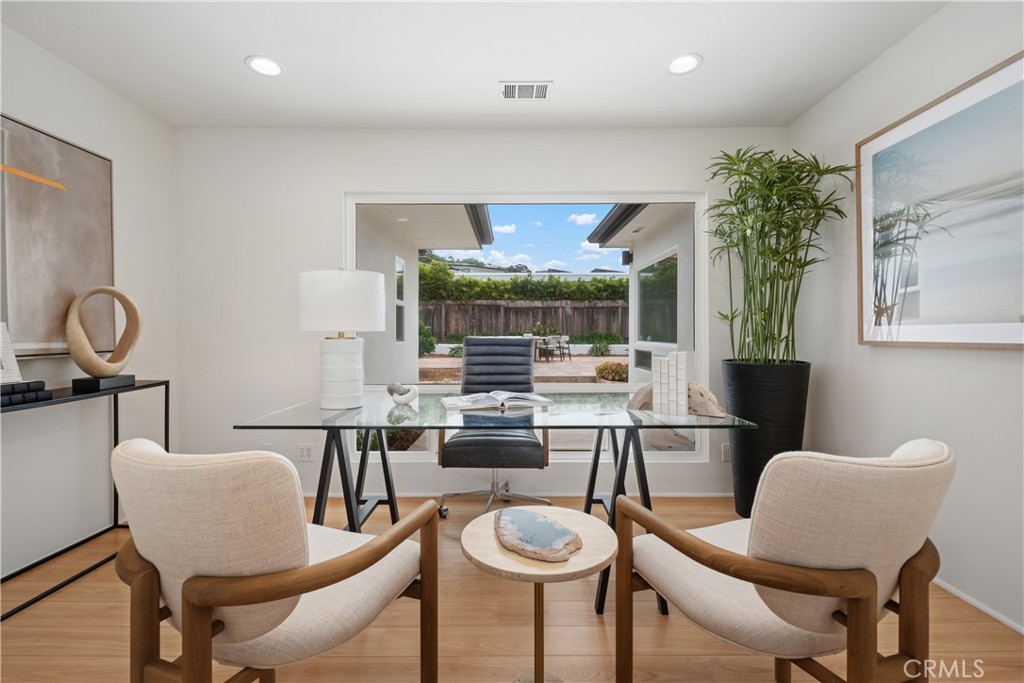 With three bedrooms--one currently serving as a dedicated office space--and two full bathrooms, this residence caters to those who value both comfort and functionality. The master suite is a retreat unto itself, featuring an oversized layout and a luxurious en-suite bath with a large shower and separate soaking tub.