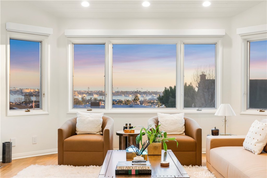 Classic Newport Beach coastal chic, designed by acclaimed Newport Beach architect Brion Jeannette, blending timeless elegance with refined sophistication. Thoughtfully curated with warm architectural details throughout. The main level offers three spacious bedrooms, two newly remodeled bathrooms, and a versatile bonus room ideal for an office, media room, or playroom. An elegant winding staircase leads to the upper level where the main living spaces and primary suite await. The chef's kitchen features granite countertops, designer backsplash, and a premium appliance suite. Living and dining areas showcase fireplaces, open-beamed ceilings, and breathtaking harbor and ocean views. The primary suite is a private retreat with water views, his and hers closets, spa-inspired bath with heated floors , and access to a serene deck ideal for enjoying sunset evenings. The backyard is a classic and elegant entertainer's sanctuary, offering one of the largest usable private yards on Kings Road. A sparkling, refreshed pool and spa are complemented by a spacious covered loggia, creating an inviting setting for year-round entertaining, alfresco dining, and relaxed coastal living.Additional highlights include an elevator, dumbwaiter, wine storage, oversized laundry and pantry, central vacuum, and an oversized two-car attached garage. Ideally located in the "Cliff Haven" neighborhood near Fashion Island, the harbor, beaches, dining, bike trails, parks, and recreation--this is Newport living at its finest.