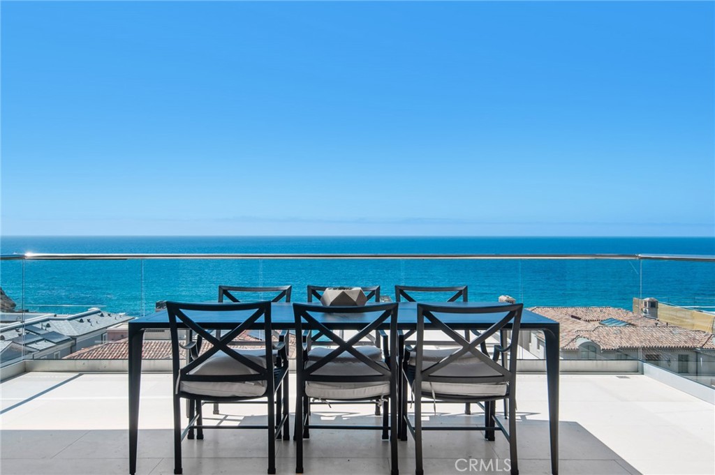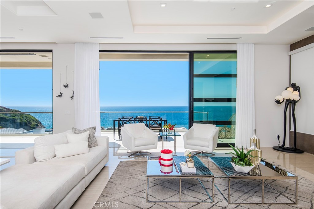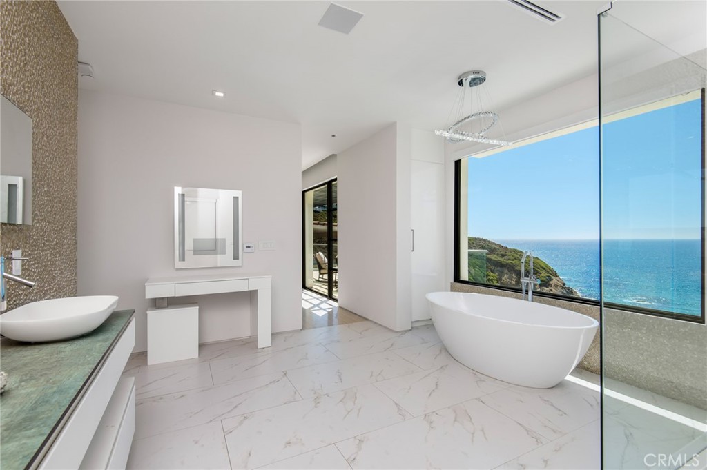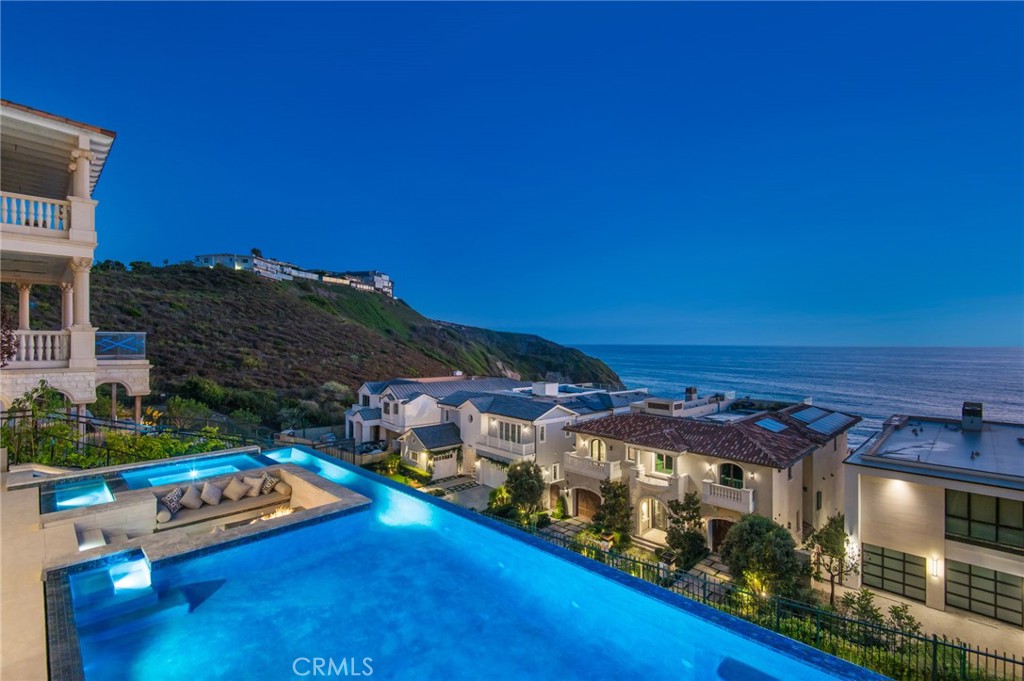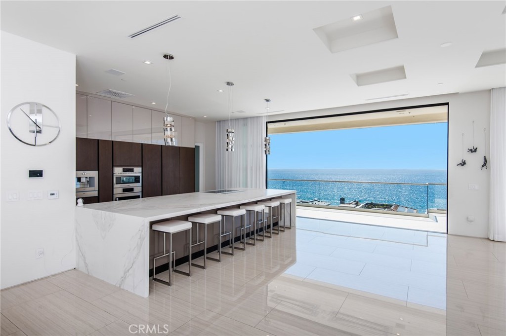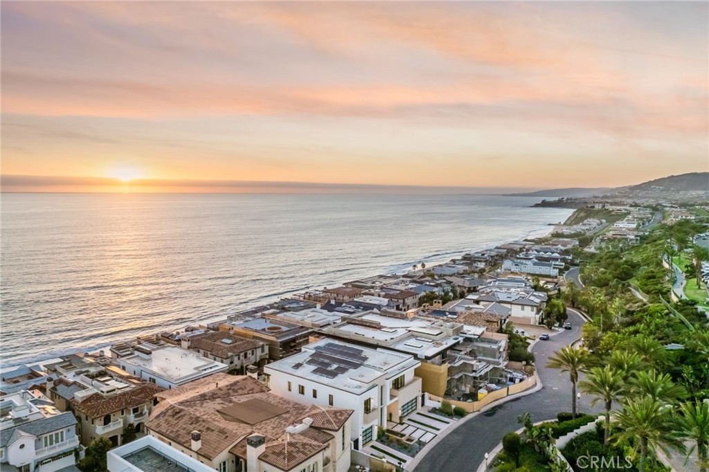 Recently constructed contemporary masterpiece in The Strand at Headlands - a coveted enclave located along the awe-inspiring Dana Point coastline. Sited behind the guard gates, the residence offers nearly 7,400 square feet of immaculately appointed, sleek interiors with an awe-inspiring exterior space, complete with one of the largest pools in the community. The straight-on views of the Pacific and Catalina Island begin at the entryway into this property, with its main level framed by two sets of full-height sliding glass doors spanning the length of the ocean-facing wall. Thoughtfully designed and executed, this floor offers the best in open entertaining space, with a glassed-in wine feature, living and dining areas, an office, and the home's impressive kitchen. Anchored by a bookmatched waterfall edge peninsula large enough to seat six, it boasts a cooktop and built-in coffee machine by Gaggengau, as well as a suite of Bosch appliances. Discreetly hidden, a large walk-in pantry maximizes the storage. Capitalizing on the views, the large balcony offers secondary dining and lounging areas. A modern floating staircase connects all three stories, with the upstairs dedicated to sleeping quarters. The soothing views of the Pacific extend to the primary retreat, complete with a balcony, a fireplace, and a sitting area. An expansive bathroom with a standalone ocean-facing tub, an oversized shower, and dual walk-in closets enhance the luxury of the owner's suite. Accessible by stairs and the home's elevator, the lowest level is the ultimate in California entertaining, with an impressive movie theater, a secondary living room, an Arabescato Corchia marble island, and beverage refrigerators. Blending seamlessly with the outdoors, this floor includes access to the impressive infinity edge pool with a spa, a conversation pit with a fire feature, and an outdoor kitchen. Offering privacy and convenience, the ensuite secondary bedrooms are found on both the upper and lowest levels. Property highlights include an elevator, interior and exterior security cameras, and a Control4 Smart Home system. Car enthusiasts will undoubtedly revel in the spacious four-car garage. The Strand is renowned for its residents-only amenities: a clubhouse with a pool, spa, and gym, as well as direct beach access.