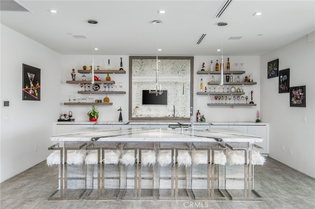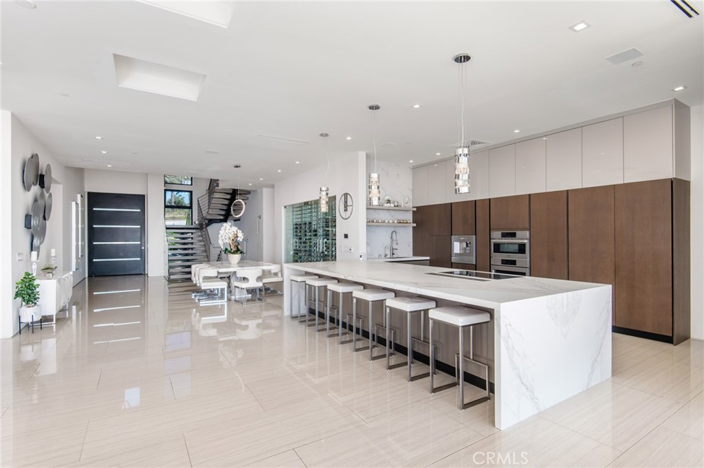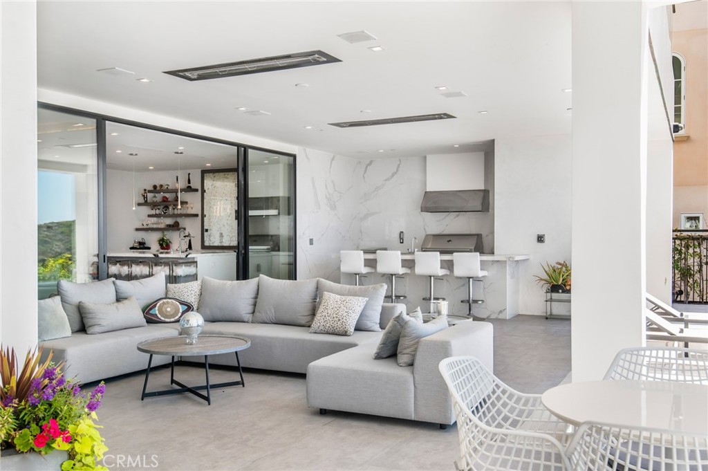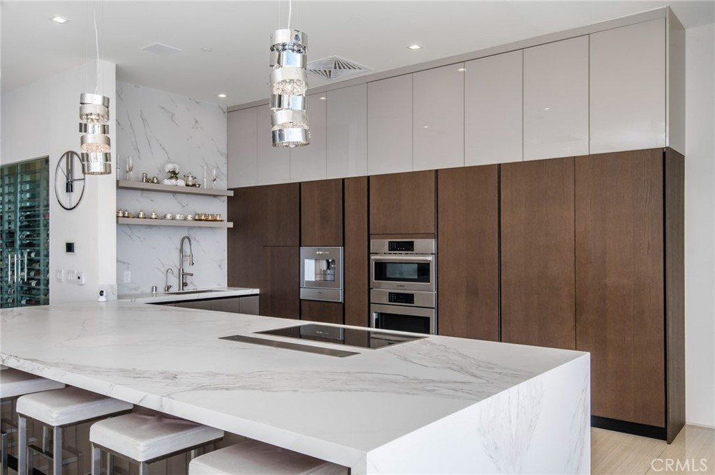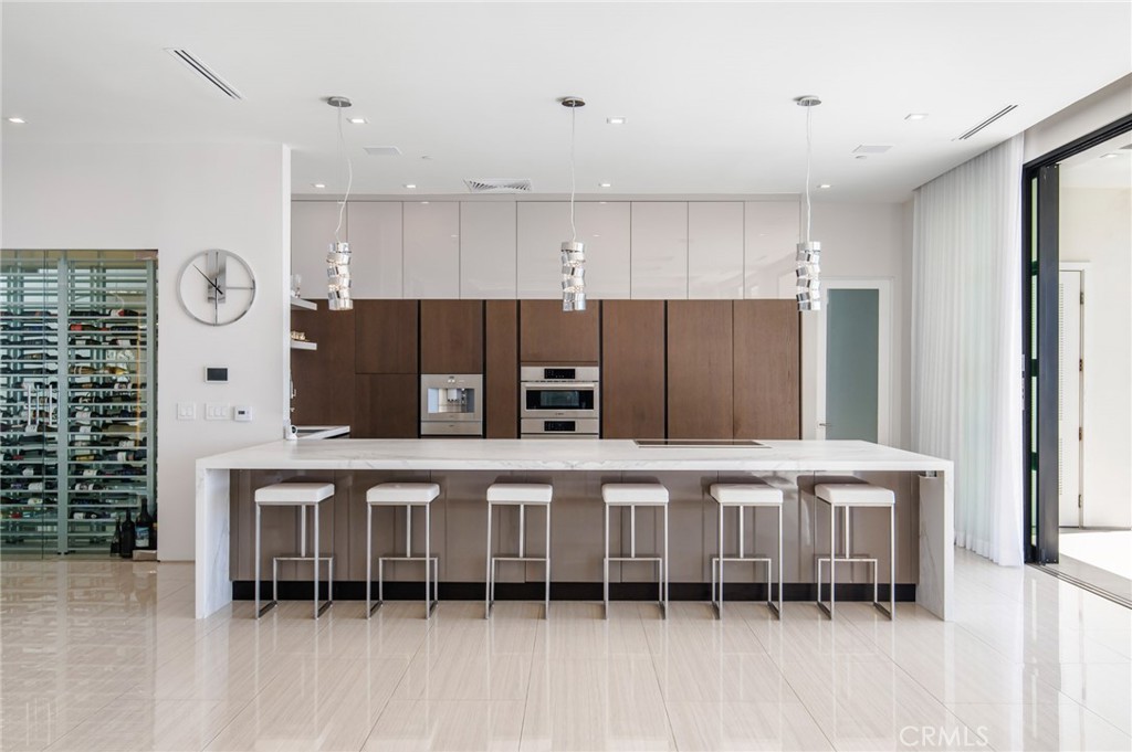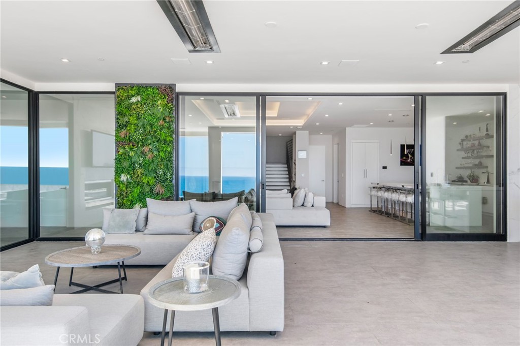 Recently constructed contemporary masterpiece in The Strand at Headlands - a coveted enclave located along the awe-inspiring Dana Point coastline. Sited behind the guard gates, the residence offers nearly 7,400 square feet of immaculately appointed, sleek interiors with an awe-inspiring exterior space, complete with one of the largest pools in the community. The straight-on views of the Pacific and Catalina Island begin at the entryway into this property, with its main level framed by two sets of full-height sliding glass doors spanning the length of the ocean-facing wall. Thoughtfully designed and executed, this floor offers the best in open entertaining space, with a glassed-in wine feature, living and dining areas, an office, and the home's impressive kitchen. Anchored by a bookmatched waterfall edge peninsula large enough to seat six, it boasts a cooktop and built-in coffee machine by Gaggengau, as well as a suite of Bosch appliances. Discreetly hidden, a large walk-in pantry maximizes the storage. Capitalizing on the views, the large balcony offers secondary dining and lounging areas. A modern floating staircase connects all three stories, with the upstairs dedicated to sleeping quarters. The soothing views of the Pacific extend to the primary retreat, complete with a balcony, a fireplace, and a sitting area. An expansive bathroom with a standalone ocean-facing tub, an oversized shower, and dual walk-in closets enhance the luxury of the owner's suite. Accessible by stairs and the home's elevator, the lowest level is the ultimate in California entertaining, with an impressive movie theater, a secondary living room, an Arabescato Corchia marble island, and beverage refrigerators. Blending seamlessly with the outdoors, this floor includes access to the impressive infinity edge pool with a spa, a conversation pit with a fire feature, and an outdoor kitchen. Offering privacy and convenience, the ensuite secondary bedrooms are found on both the upper and lowest levels. Property highlights include an elevator, interior and exterior security cameras, and a Control4 Smart Home system. Car enthusiasts will undoubtedly revel in the spacious four-car garage. The Strand is renowned for its residents-only amenities: a clubhouse with a pool, spa, and gym, as well as direct beach access.