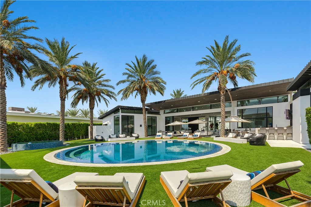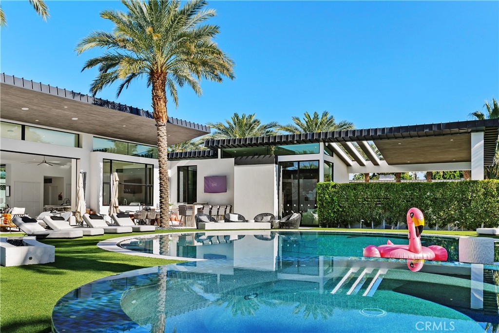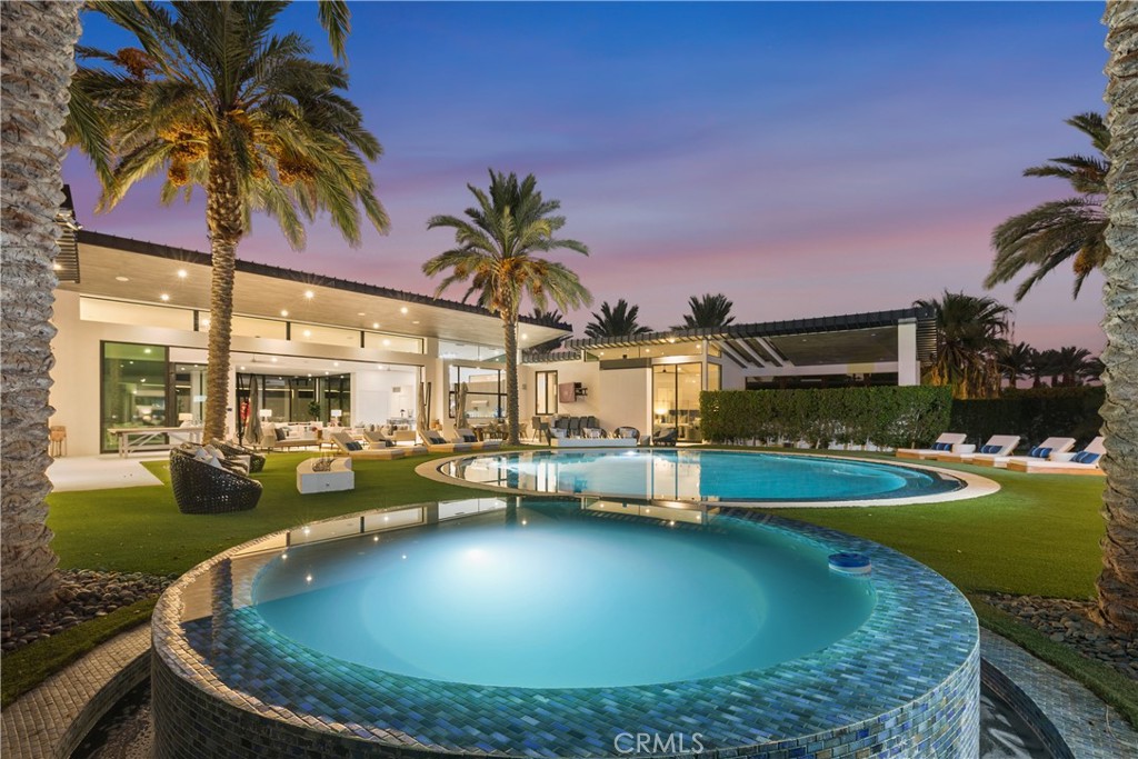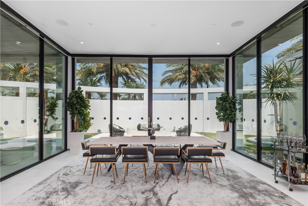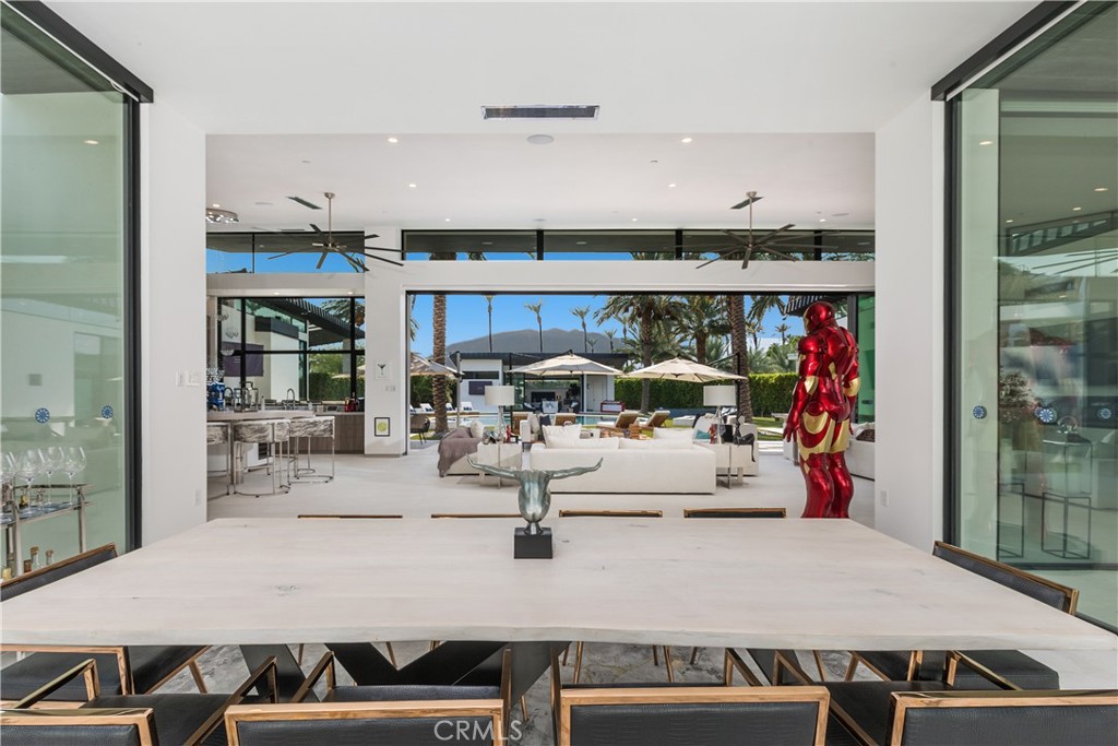 With soaring ceilings up to 20 feet, floor-to-ceiling glass walls , no interior steps , limestone flooring throughout and expansive free flowing open spaces, this home captures 270-degree vistas of the stunning Santa Rosa Mountains, bathing the southwest-facing outdoor spaces in dramatic sunset views. The distinctive round arc reactor pool and expansive outdoor entertainment areas fulfill every desire, making this estate ideal for grand gatherings or intimate family moments. Inside, the residence boasts spacious living areas designed to entertain, including a luxurious primary suite with mountain views, a large walk-in shower, and a soaking tub. A separate, fully equipped casita adds a private retreat for guests or extended family, complete with its own kitchenette, bath, and outdoor living space. The home's strategic design harmonizes opulent indoor spaces the graciously tie in the outdoor living areas to be ONE, featuring a James Bond-worthy relaxation pavilion, bar, and barbecue area, perfect for the entertainer at heart. Whether lounging by the rim-flow pool, enjoying an outdoor shower, or relaxing in the suite's outdoor bath under the summer stars, this residence delivers an unparalleled experience. With a two-car garage, two-car carport, and close proximity to private jet charters, this estate offers the ultimate in convenience and luxury. 8 Makena is the epitome of architectural excellence, a world-class sanctuary ready to elevate any portfolio.